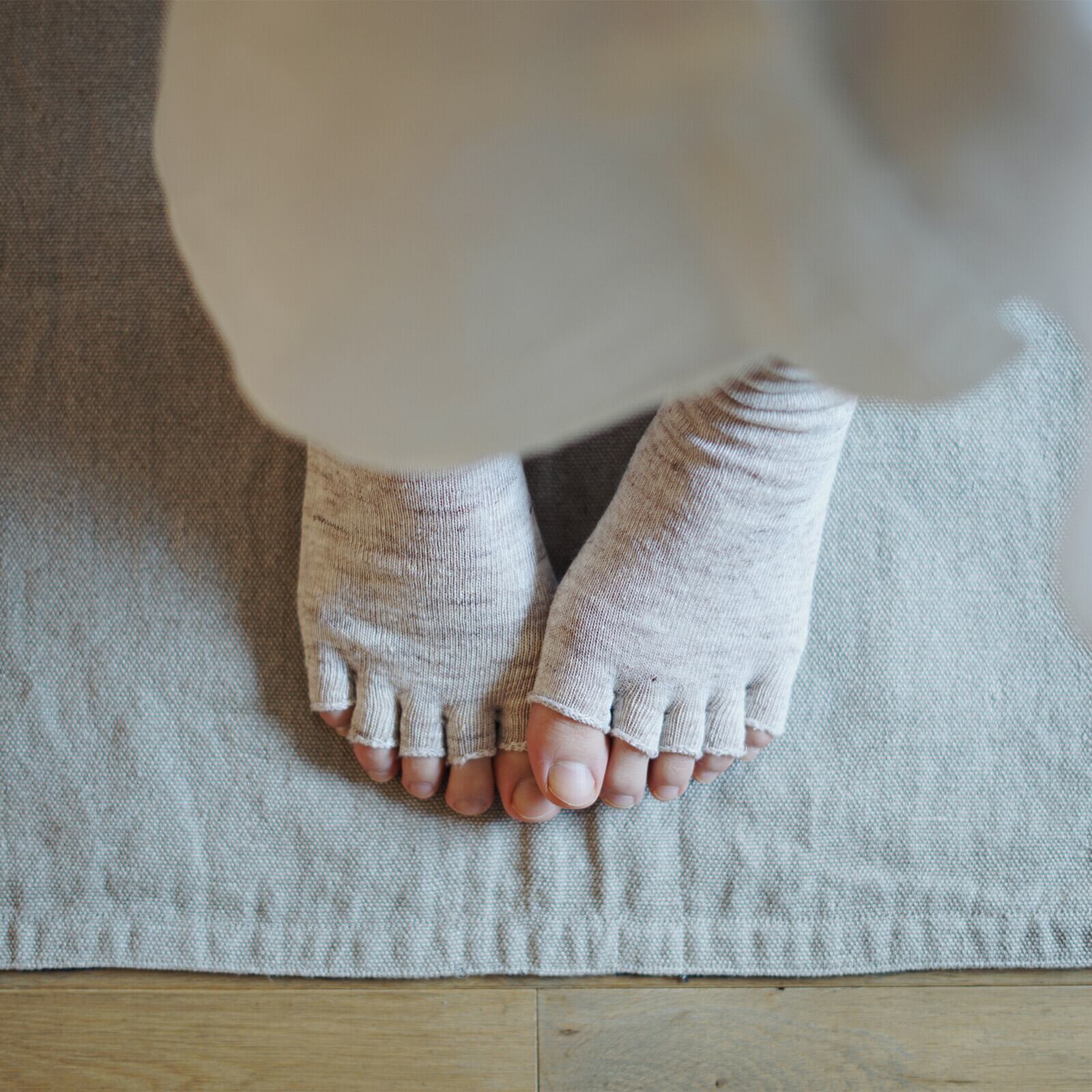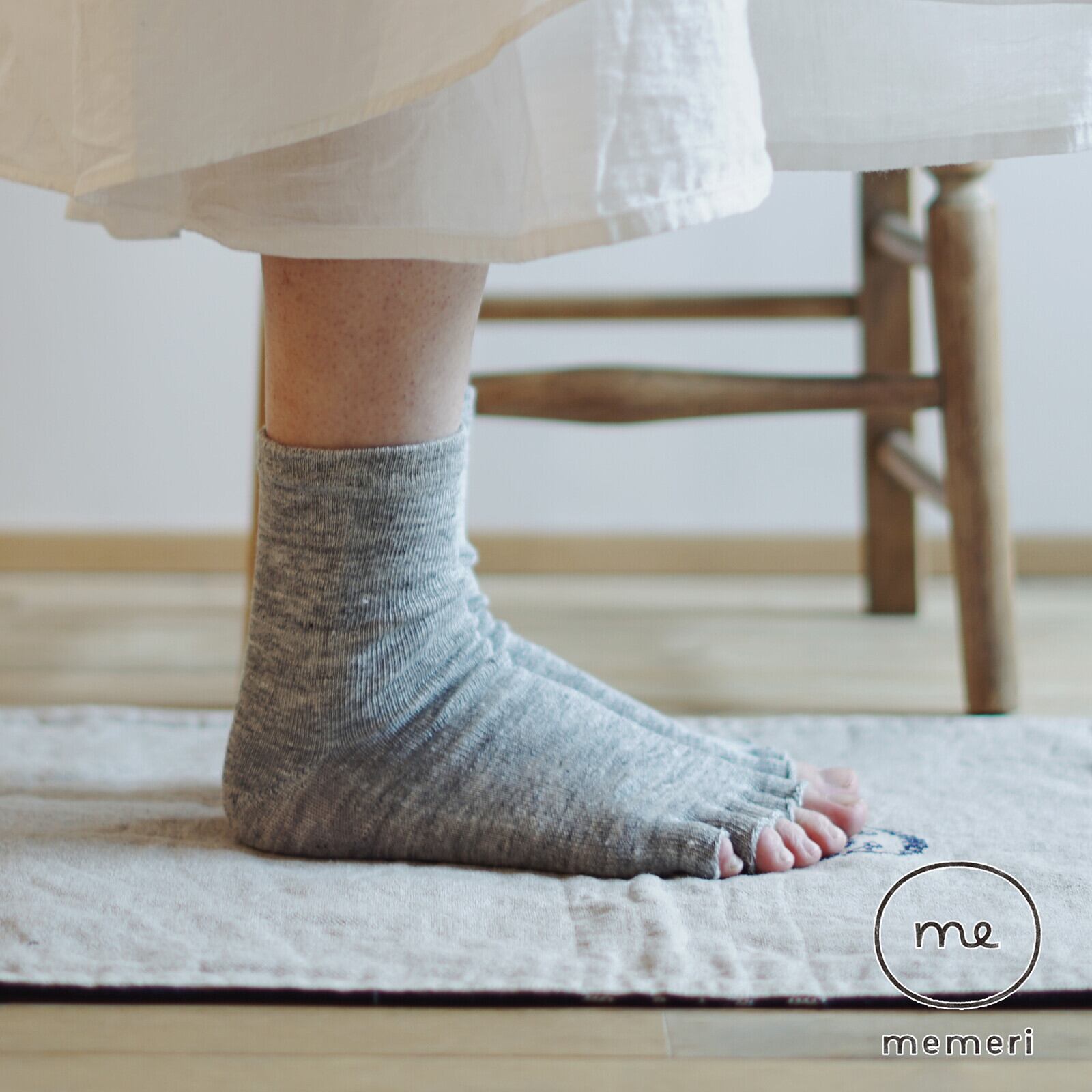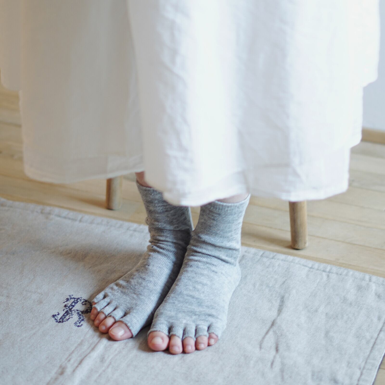 リネンを使用したシャリシャリとしたさわやかな履き心地の指先が空いた5本指靴下です。