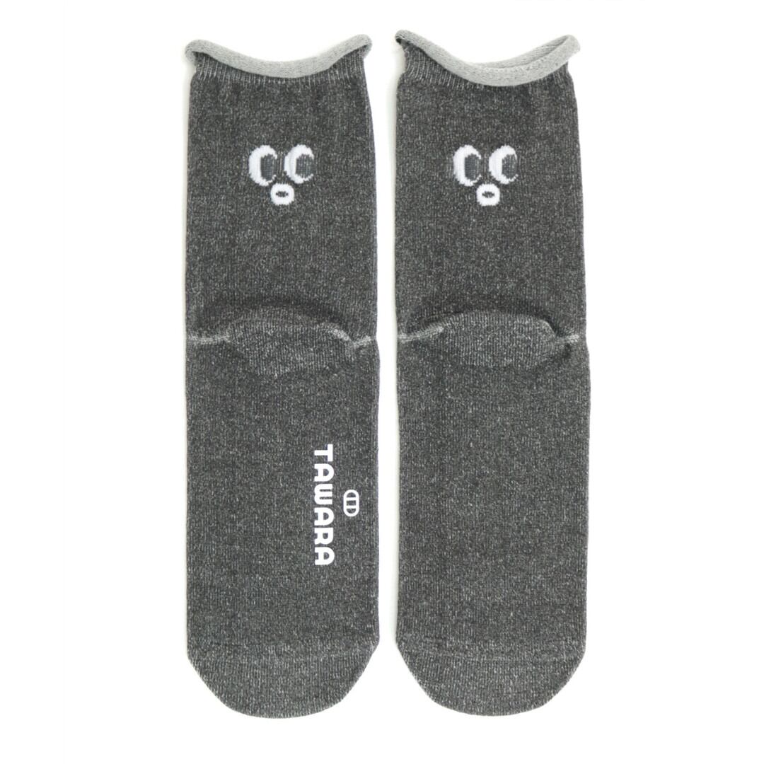 複雑な色合いがいい感じの杢調で、履いたときのバックスタイルがたまりません。目が合ったら思わず笑ってしまいそうなファニーフェイス